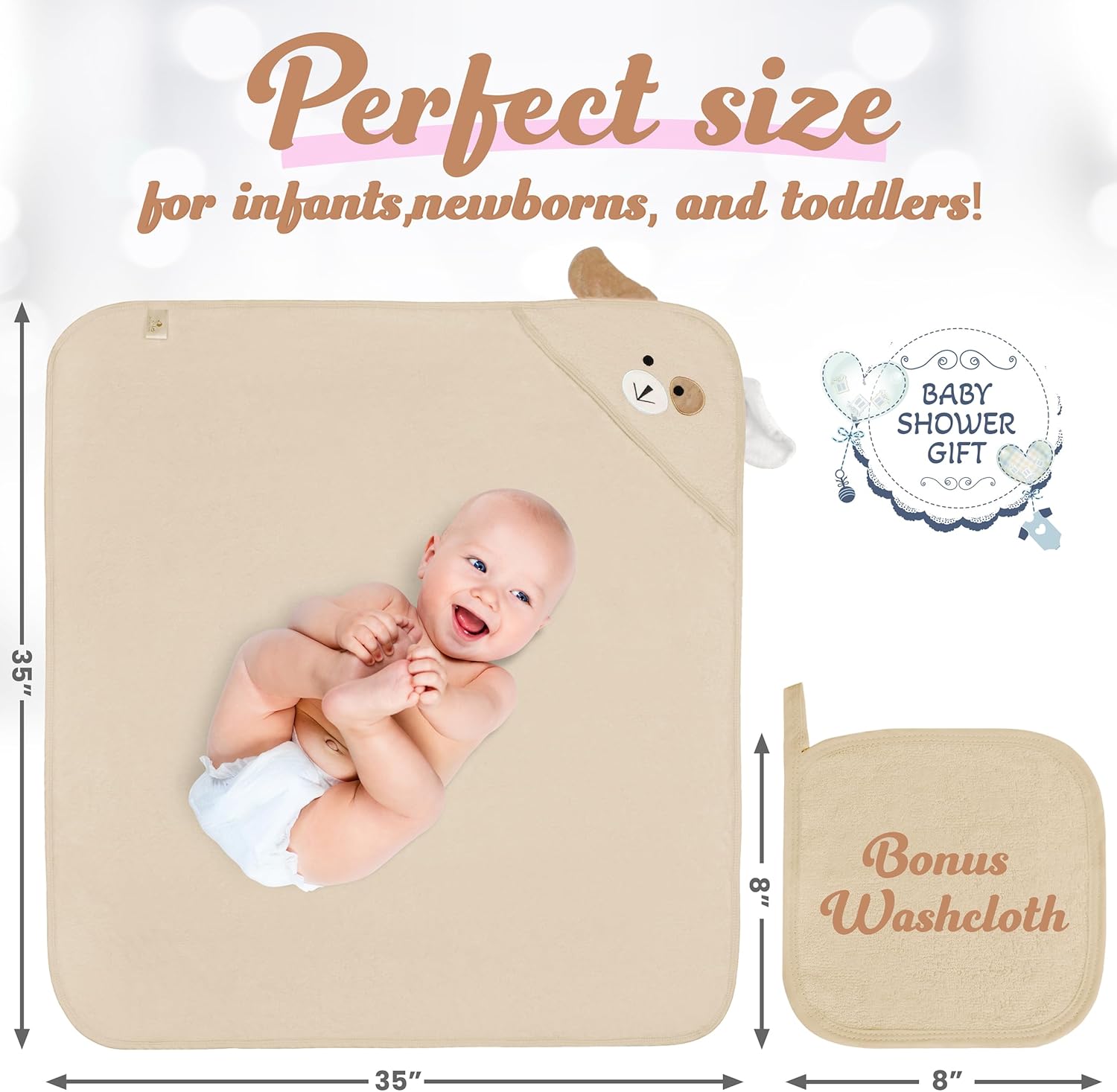 Make bath time comfortable and convenient with this hooded baby towel set, designed for everyday use. Made from 92% viscose derived from bamboo and 8% cotton, the soft and absorbent fabric is suitable for delicate baby skin. The attached hood helps retain warmth after bathing, while the generously sized towel provides comfortable coverage for newborns, infants, and toddlers. Featuring a neutral design with a charming dog motif, this towel set combines practicality with simple style. Each set includes a hooded towel and coordinating washcloths, offering a complete and easy bath time solution. Crafted without harsh dyes, this bamboo-blend towel set is easy to care for and ideal for regular use.