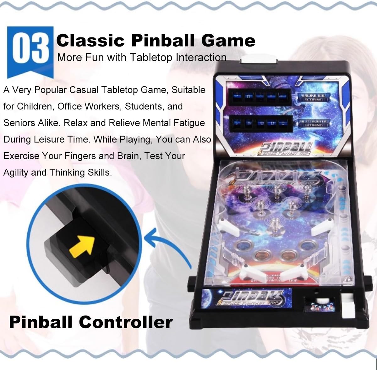 Bring home the excitement of classic arcade entertainment with this premium Pinball Machine that delivers endless fun.Experience the ultimate Pinball Games Machine featuring dynamic lighting, responsive flipper action, and dual scoring systems that track your progress. The engaging ball-launching mechanics provide not just entertainment but also help develop valuable cognitive skills including hand-eye coordination, logical thinking, and strategic planning. Whether you're looking for educational play, family bonding activities, or the perfect stress-relieving break, this Pinball Ball Shooting Game delivers on all fronts.Product Specifications:Material: High-Quality ABS ComponentsProduct Dimensions: 42 x 24.5 x 27cm / 16.5in x 9.6in x 10.6inPower: Batteries are not included and must be purchased separately.Package Includes: Pinball Machine
