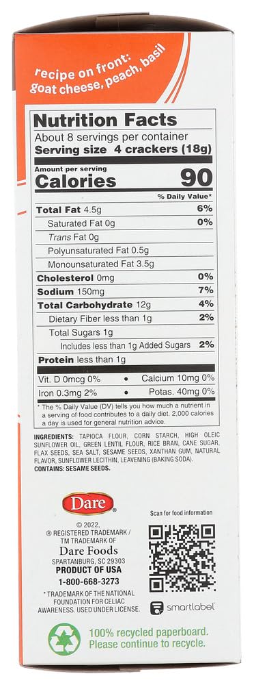 Dare Breton Gluten Free Crackers, Original with Flax, 4.76 Ounce (Pack of 6) by Dare