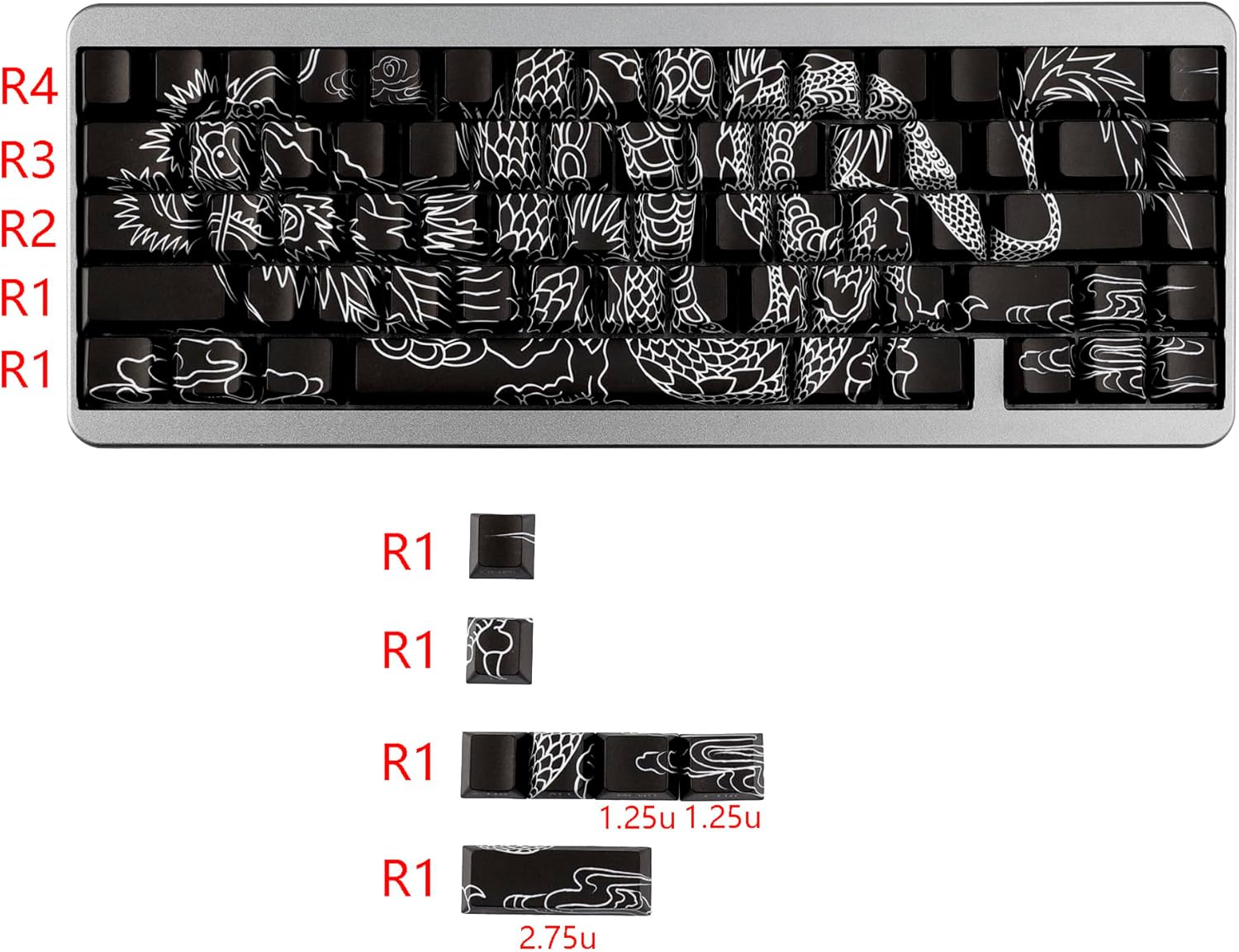 Package Included: 1×Full set 78 keys+Keycap Puller Not included keyboard Details: This link is only the keycaps,no keyboard included. Thickness is about 1.4-1.7mm. PBT Material:This keycap is made of high quality PBT key material, with matte texture and wear resistance. Dye Sub:Dye Sublination keycaps advanced dye sublimation technology made the color has penetrated into the keycaps, keycaps are durable and will never fade. Cherry Profile:Cherry profile makes the keys lower and wider, giving you a more comfortable and natural feeling when typing. Increase your productivity and avoid fatigue with this ergonomic design. Side lit Backlit Design: It's better to use on south-facing LED keyboard. North-facing LED are very ineffective and the patterns on the side will look dim.The top legend and the icos are all dye-sublimation which can't shine through.The side legend is double shot which can get led through. Compatibility: It's compatible with most standard ANSI 61 64 68 75 layout Mx mechanical keyboard and optical keyboard whose space is 6.25u,namely around 4.61 inch. Incompatibility: It's not compatible Apex pro keyboard.The led stuck the keys. It's not compatible with most Logitech Corsair Razer Classic keyboard whose space is 6u 6.5u etc. It's not compatible with low profile MX keyboard.The big keys may stuck.